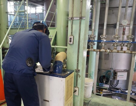 製品の原料は粉状のものもあれば液状のものもあり、液状の原料はポンプを使って釜に投入します。私が製造を担当している薬剤は、一度に少なくとも4トン、多い時には20トンもの量を製造します。 製造した製品は量や性質に合わせてコンテナ・ドラム・一斗缶に充填し、納期までにお客様のもとへ届けています。