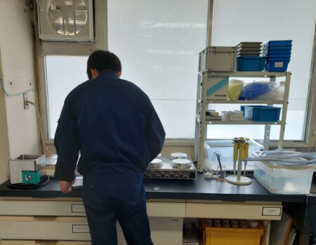2年目からは研究部に配属となり、主に分析業務を行っています。サービスの一環として行っている定期分析や、現場での薬剤の効果のラボ評価、お客様のお困りごとを解決するための最適な薬剤の選定などを行っています。